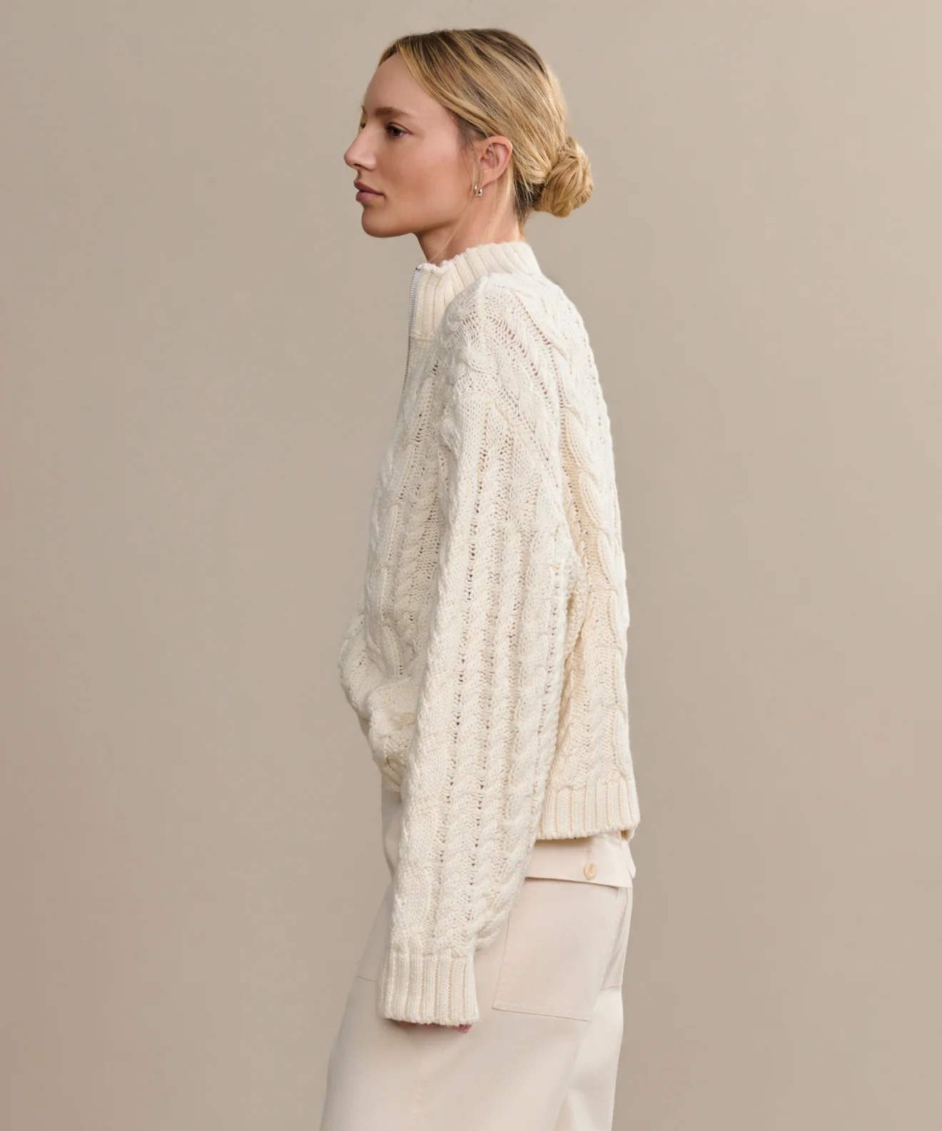 Cotton Cable Half Zip Ivory