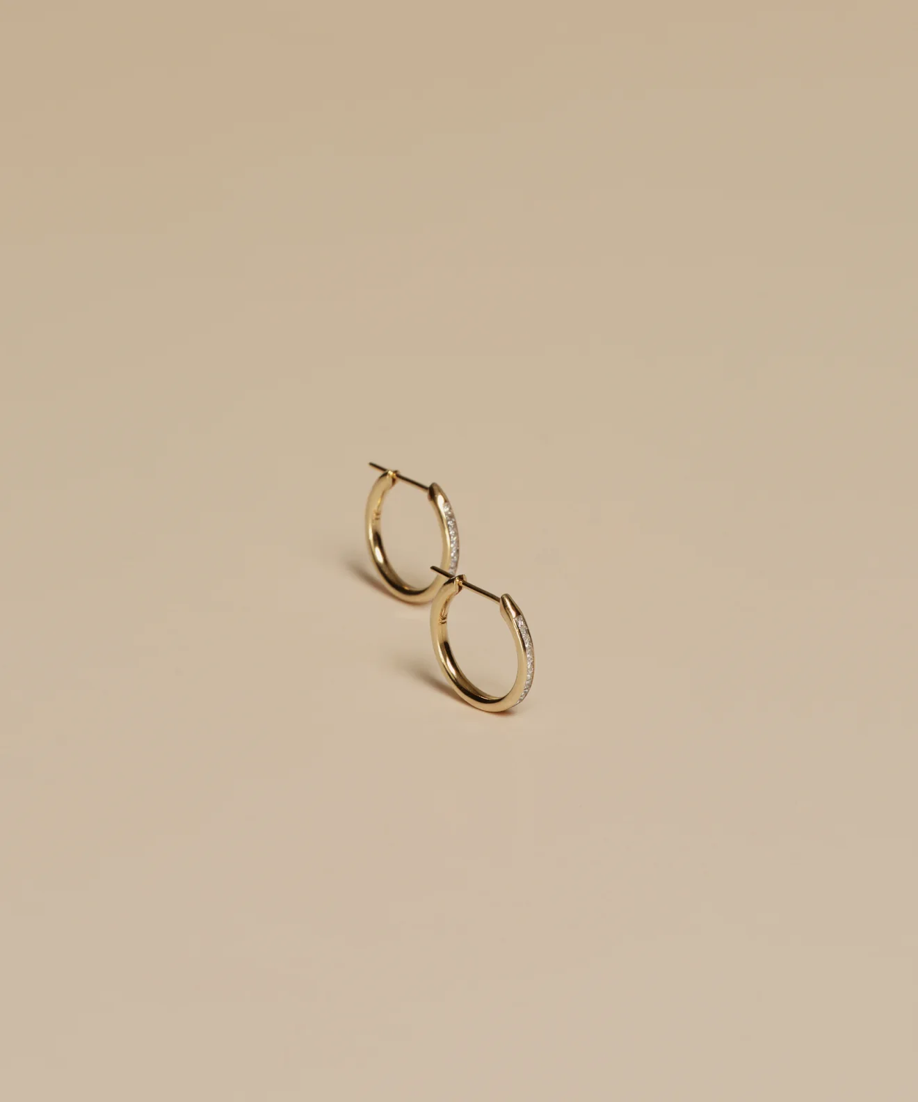14k solid gold hoops with square diamonds.