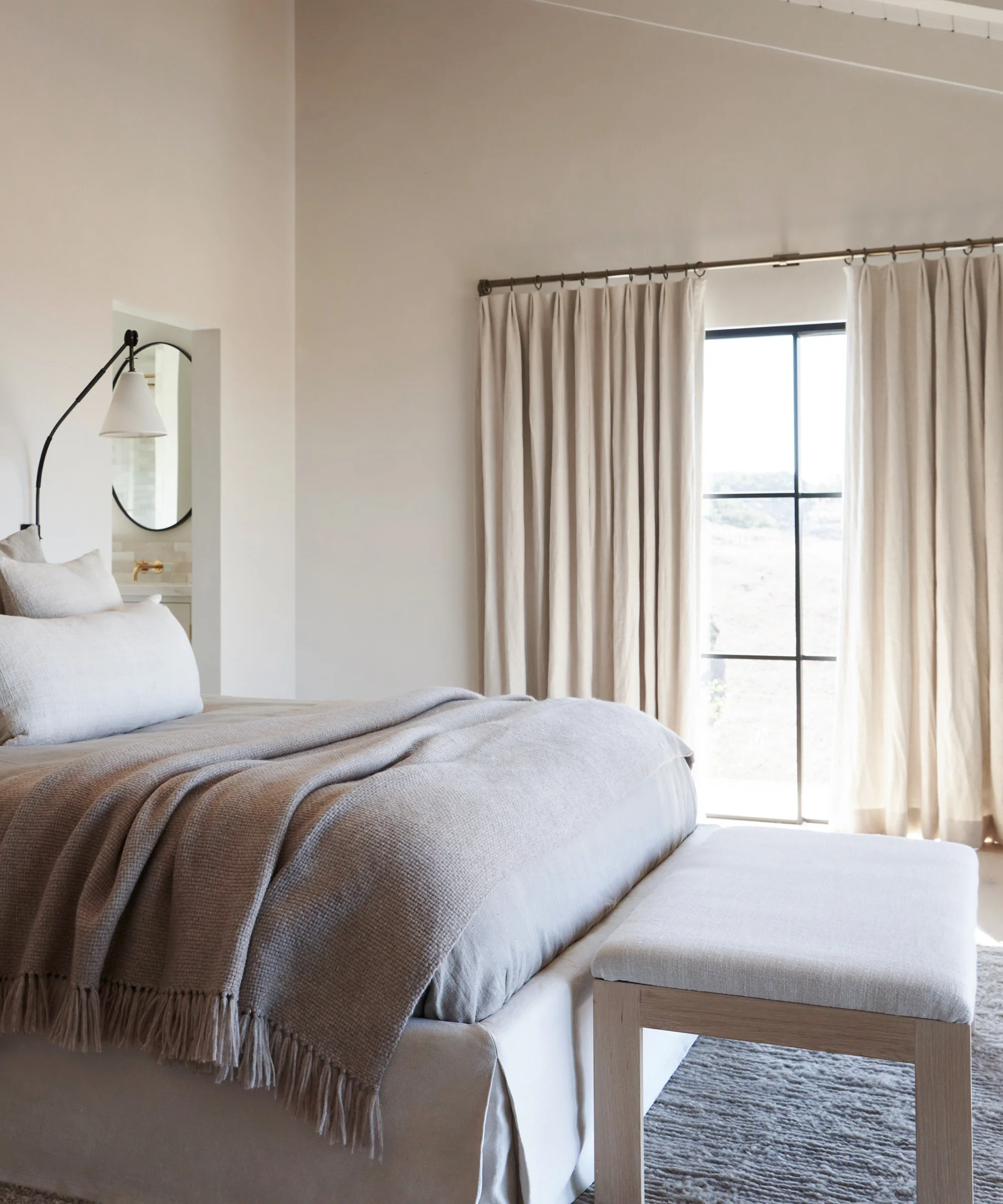 Perfect for the end of a bed, entryway, or hallway. Subtle texture adds interest and depth that can be easily mixed and matched.
